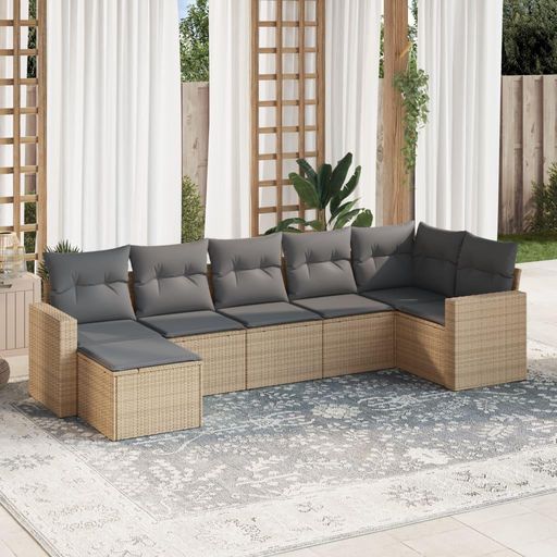 Salon de jardin avec coussins 7 pcs beige resine tressee