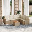 Salon de jardin avec coussins 7 pcs beige resine tressee