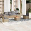 Salon de jardin avec coussins 7 pcs beige resine tressee