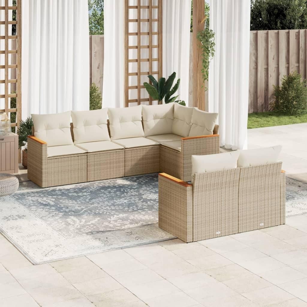 Salon de jardin avec coussins 7 pcs beige resine tressee
