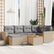 Salon de jardin avec coussins 7 pcs beige resine tressee
