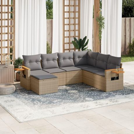 Salon de jardin avec coussins 7 pcs beige resine tressee