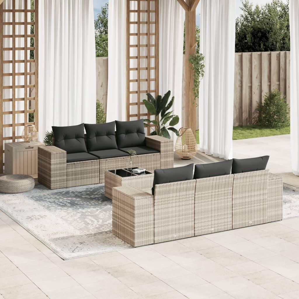 Salon de jardin avec coussins 7 pcs gris clair resine tressee