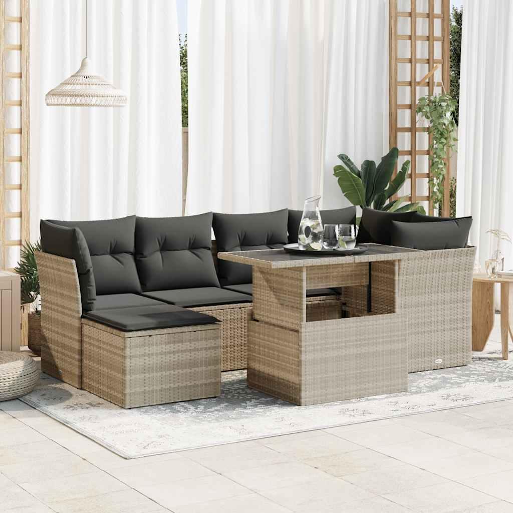 Salon de jardin avec coussins 7 pcs gris clair resine tressee
