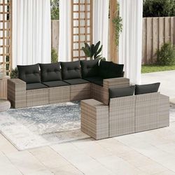 Salon de jardin avec coussins 7 pcs gris clair resine tressee