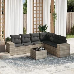 Salon de jardin avec coussins 7 pcs gris clair resine tressee