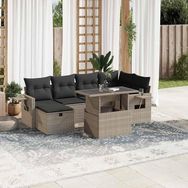 Salon de jardin avec coussins 7 pcs gris clair resine tressee