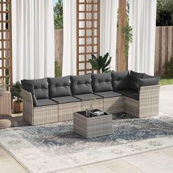 Salon de jardin avec coussins 7 pcs gris clair resine tressee