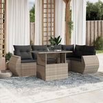 Salon de jardin avec coussins 7 pcs gris clair resine tressee