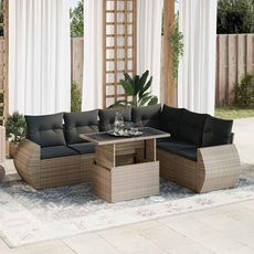 Salon de jardin avec coussins 7 pcs gris resine tressee