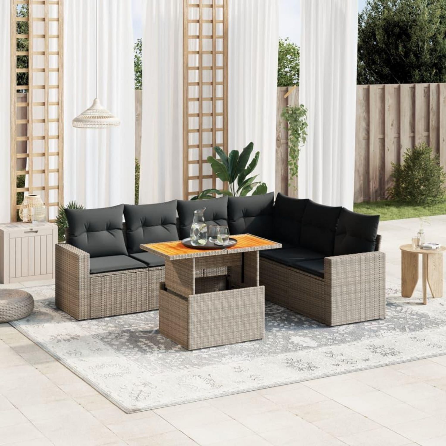 Salon de jardin avec coussins 7 pcs gris resine tressee