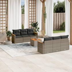 Salon de jardin avec coussins 7 pcs gris resine tressee
