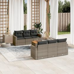 Salon de jardin avec coussins 7 pcs gris resine tressee