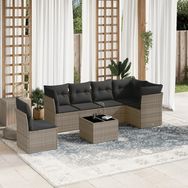 Salon de jardin avec coussins 7 pcs gris resine tressee