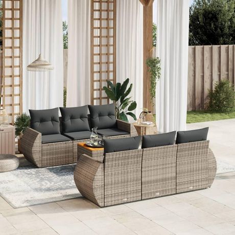 Salon de jardin avec coussins 7 pcs gris resine tressee