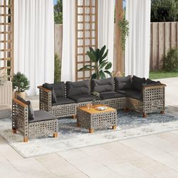Salon de jardin avec coussins 7 pcs gris resine tressee