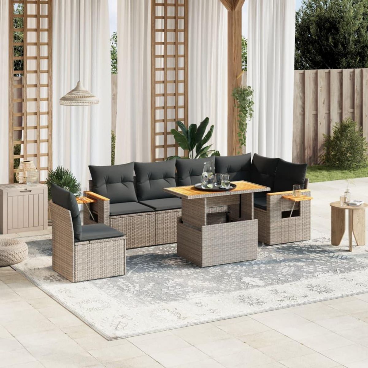 Salon de jardin avec coussins 7 pcs gris resine tressee