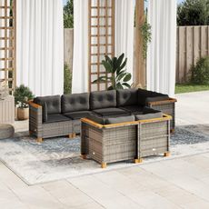 Salon de jardin avec coussins 7 pcs gris resine tressee