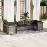 Salon de jardin avec coussins 7 pcs gris resine tressee