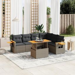 Salon de jardin avec coussins 7 pcs gris resine tressee