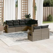 Salon de jardin avec coussins 7 pcs gris resine tressee