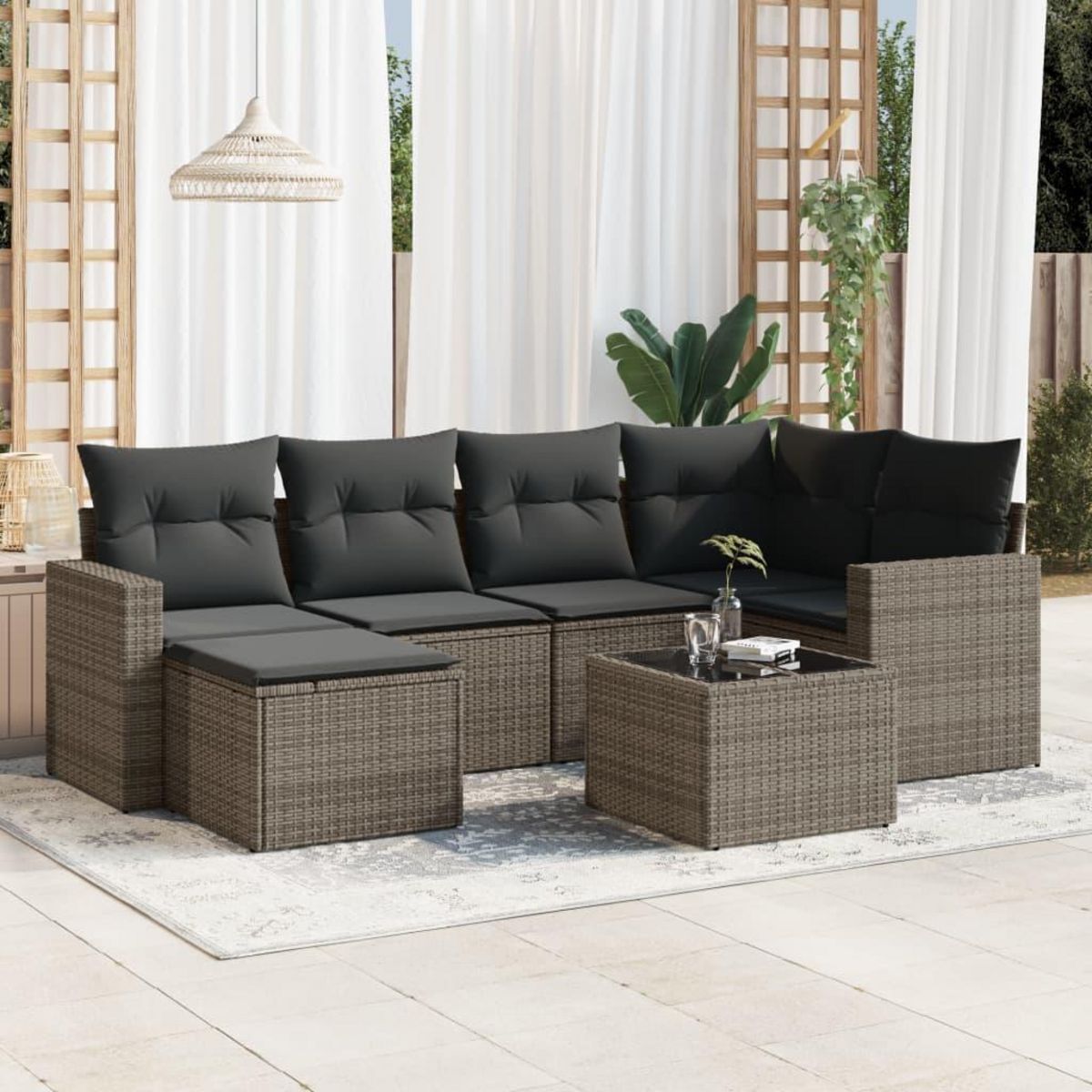 Salon de jardin avec coussins 7 pcs gris resine tressee