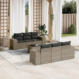 Salon de jardin avec coussins 7 pcs gris resine tressee