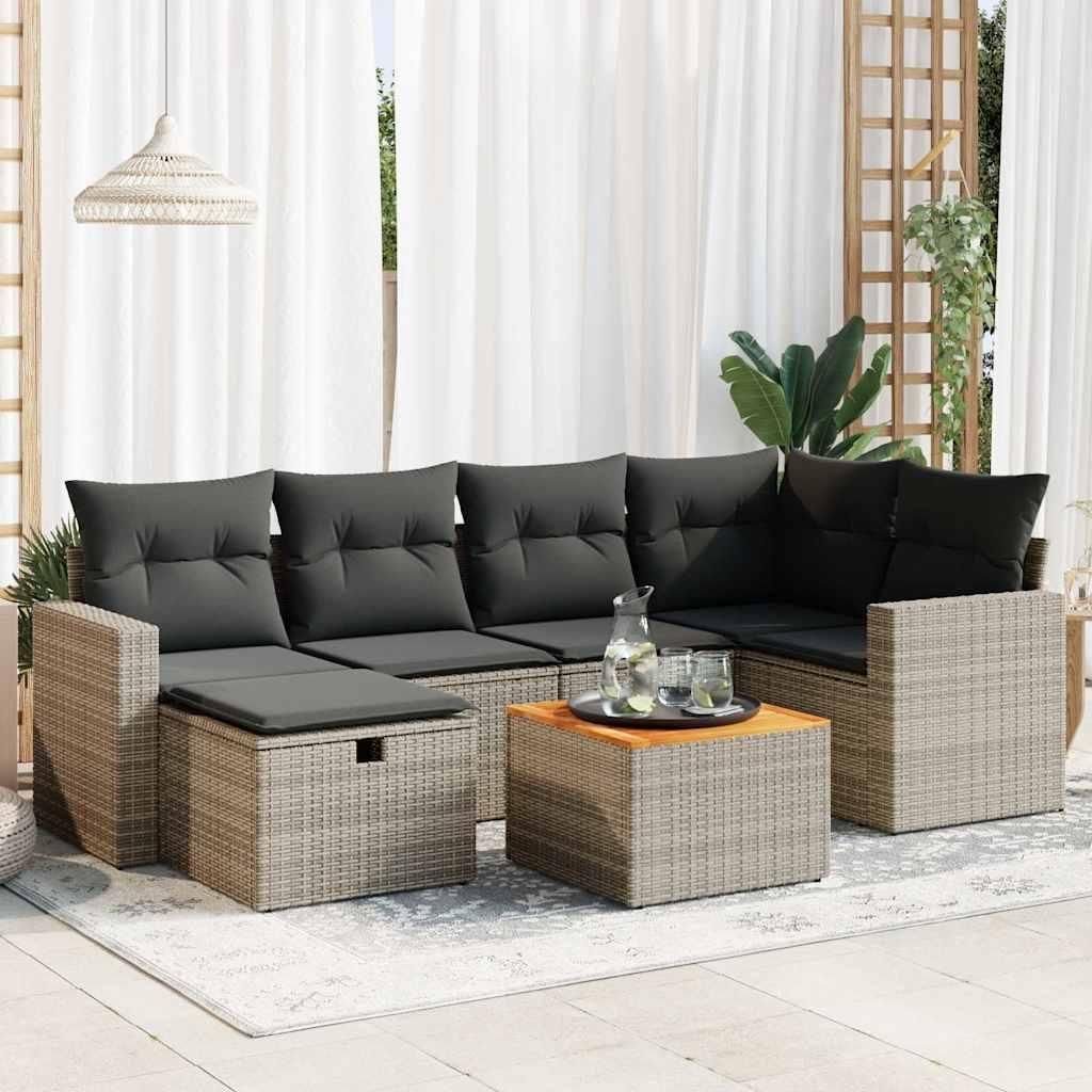 Salon de jardin avec coussins 7 pcs gris resine tressee
