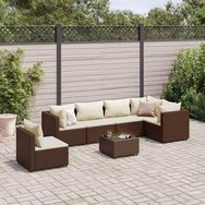 Salon de jardin avec coussins 7 pcs marron resine tressee