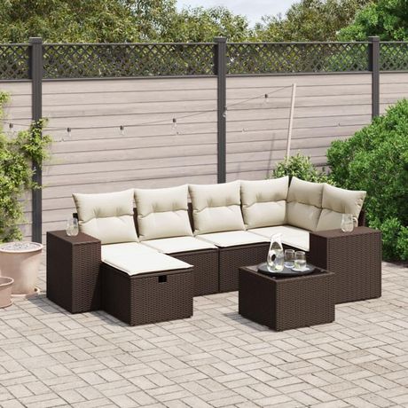 Salon de jardin avec coussins 7 pcs marron resine tressee
