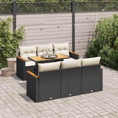 Salon de jardin avec coussins 7 pcs noir resine tressee acacia