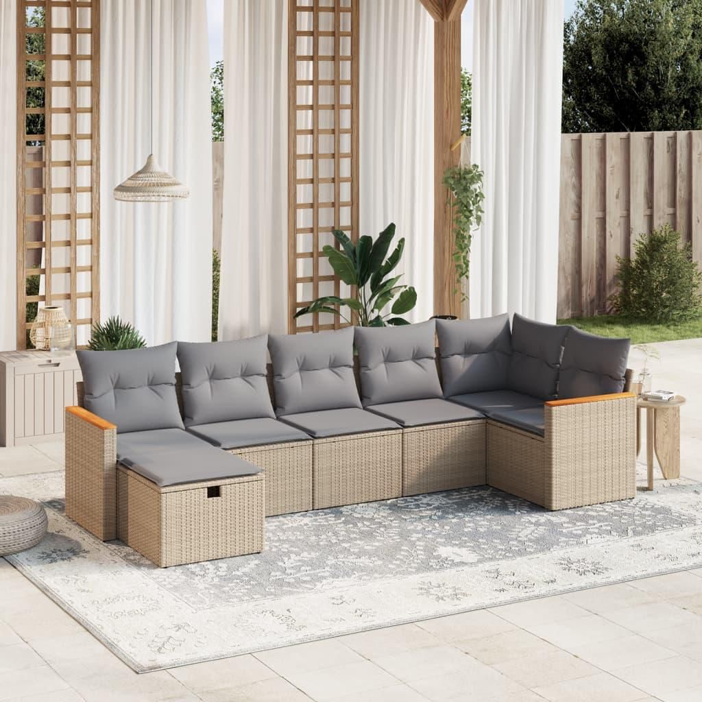 Salon de jardin avec coussins 7pcs melange beige resine tressee