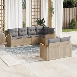 Salon de jardin avec coussins 7pcs melange beige resine tressee