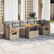 Salon de jardin avec coussins 8 pcs beige resine tressee acacia