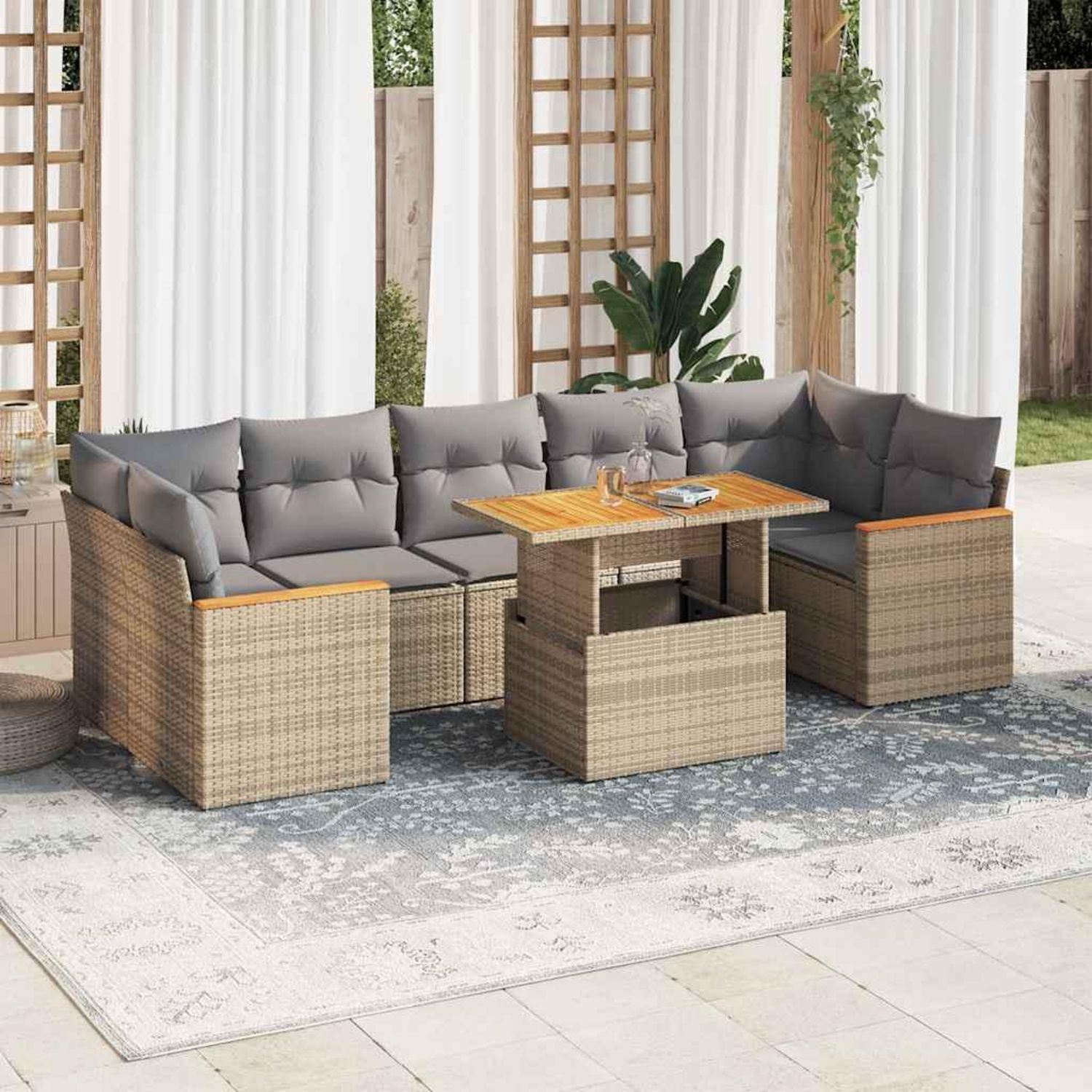 Salon de jardin avec coussins 8 pcs beige resine tressee acacia