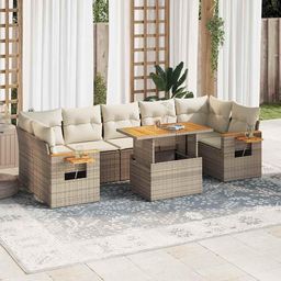 Salon de jardin avec coussins 8 pcs beige resine tressee acacia