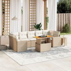 Salon de jardin avec coussins 8 pcs beige resine tressee