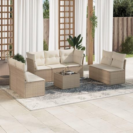 Salon de jardin avec coussins 8 pcs beige resine tressee