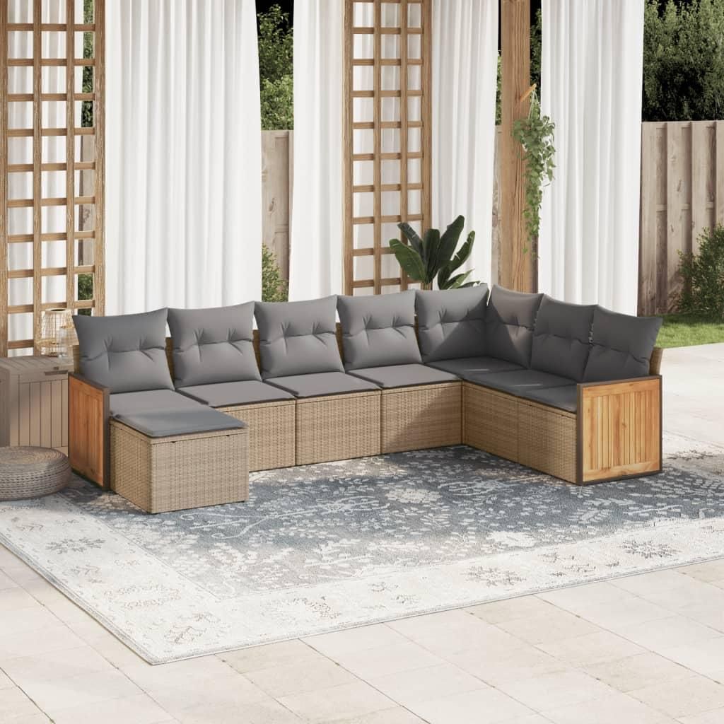 Salon de jardin avec coussins 8 pcs beige resine tressee