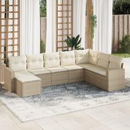 Salon de jardin avec coussins 8 pcs beige resine tressee