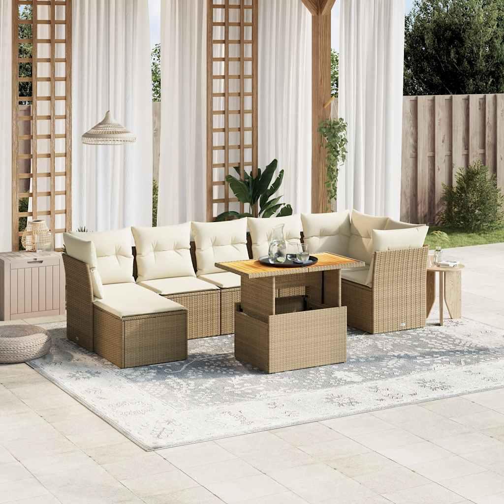 Salon de jardin avec coussins 8 pcs beige resine tressee
