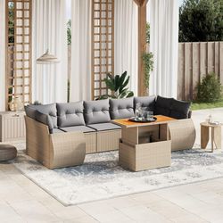 Salon de jardin avec coussins 8 pcs beige resine tressee