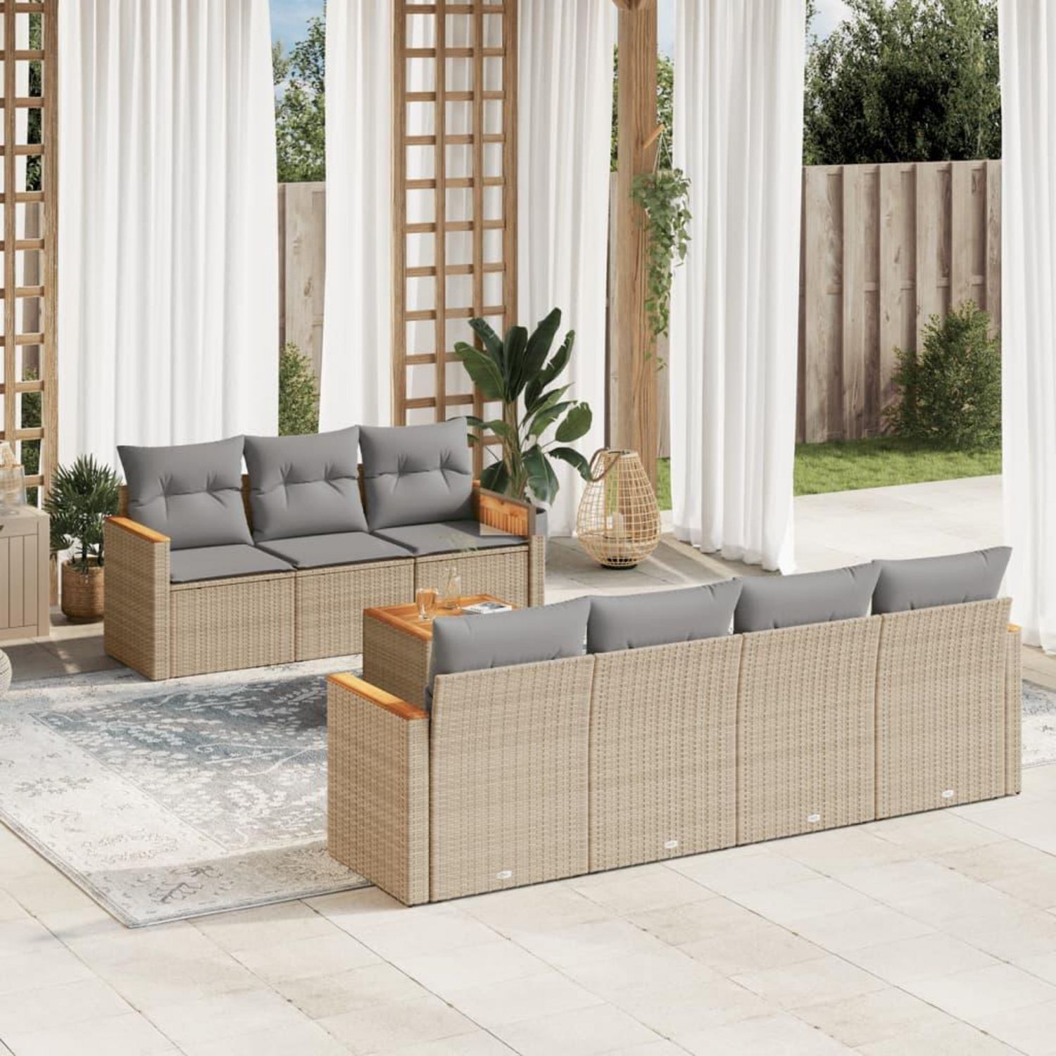 Salon de jardin avec coussins 8 pcs beige resine tressee