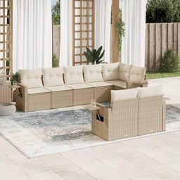 Salon de jardin avec coussins 8 pcs beige resine tressee