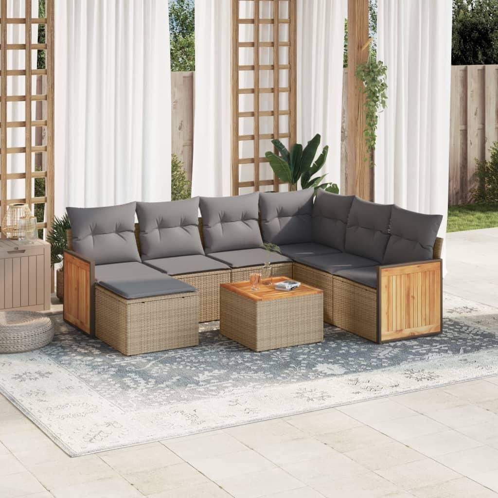 Salon de jardin avec coussins 8 pcs beige resine tressee