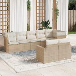 Salon de jardin avec coussins 8 pcs beige resine tressee