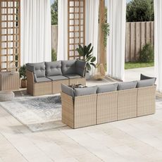 Salon de jardin avec coussins 8 pcs beige resine tressee
