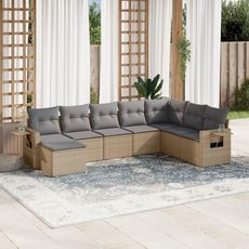 Salon de jardin avec coussins 8 pcs beige resine tressee