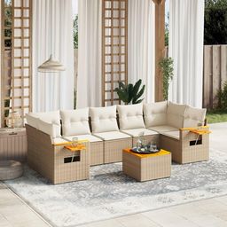 Salon de jardin avec coussins 8 pcs beige resine tressee