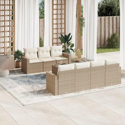 Salon de jardin avec coussins 8 pcs beige resine tressee
